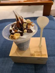甘いソフトとチョコの合間にナッツの香ばしさ、下にはフレークも有って私的には普通のパフェみたいだけど、ソフト自体が美味しくてまた食べたいってなってます🤤